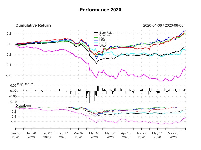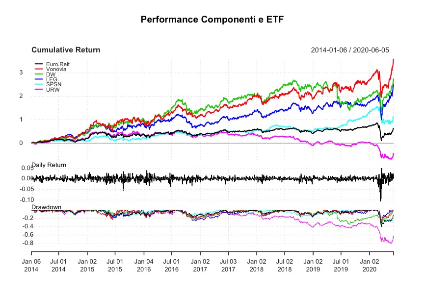 Abbiamo visto la composizione dell’iShares European Property Yield UCITS ETF (IPRP:IE00B0M63284),che è un ETF sui REIT europei che presentano un certo rendimento da dividendo. Analizziamo ora la sua performance rispetto ai suoi primi 5 componenti (alla fine di maggio 2020):