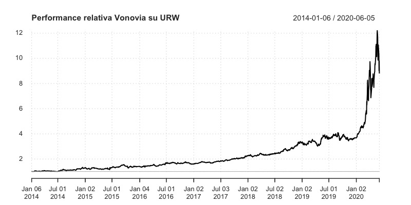 Vediamo come i 3 componenti del residenziale tedesco abbiano sovraperformato l’ETF e come URW sia molto in crisi già prima del Covid col suo portafoglio di centri commerciali.