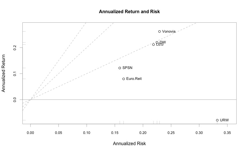 URW si fa notare data la sua performance negativa e SPSN per la sua bassa volatilità relativa, ovvio ottimo rendimento per Vonovia.