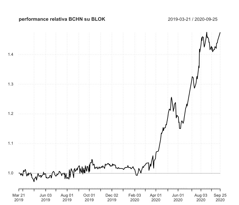 Concludendo con l’analisi del rischio vediamo che i 4 ETF hanno subito correzioni nell’ordine del 30%, mentre l’investimento diretto in Bitcoin mostra correzioni più frequenti e di maggiore entità. L’Invesco Elwood Global Blockchain (BCHN) ha mostrato di essere un prodotto molto valido nell’ultimo periodo, data la sua giovinezza vedremo se così si confermerà in futuro.