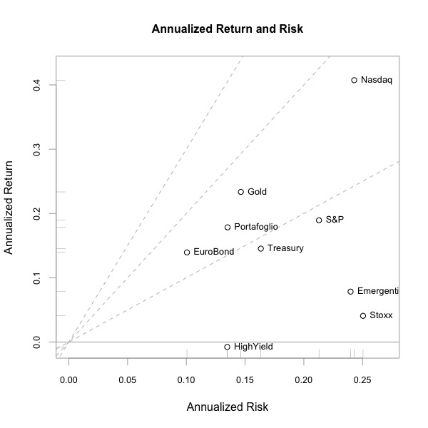 | S&P | NASDAQ | STOXX | EMERGENTI | H.Y. | TREASURY | EUBOND | GOLD | PORTAFOGLIO |
