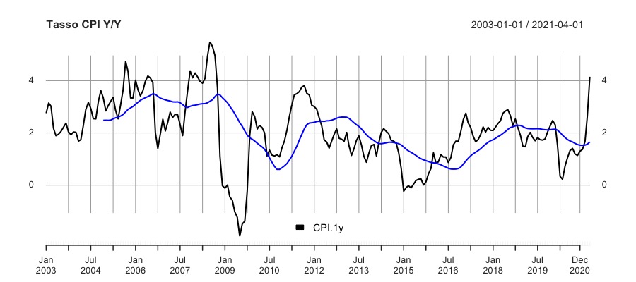 Diamo quindi uno sguardo all’inflazione CPI americana, che ha segnato un +4.2% a aprile , valore che non si vedeva dal 2009. Se guardiamo la media mobile a 24 mesi notiamo che è ancora sotto il 2% (in salita) e che nel periodo 2004-2010 era rimasta a lungo sopra il 2%, uno scenario quindi già visto e conclusosi con la grande crisi finanziaria. In un periodo di inflazione in ascesa i REITs sono tra gli investimenti più interessanti e il 2021 lo ha confermato.