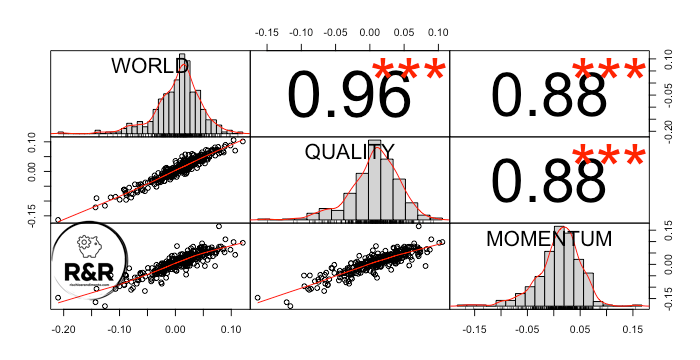 Come possiamo vedere considerando il periodo a disposizione il fattore Quality si caratterizza per una performance annualizzata leggermente migliore del momentum con una volatilità contenuta, addirittura minore di quella dell’indice classico.