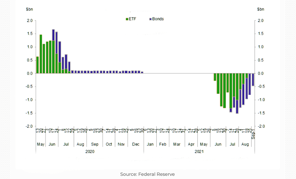 La Federal Reserve ha iniziato a vendere le sue quote in 16 ETF a partire da giugno 2021.