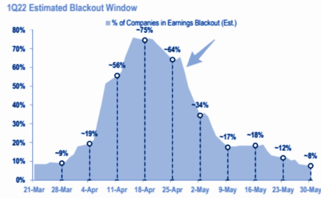 La maggior parte delle società quotate in borsa ha una politica di blackout ( blackout policy ) delle negoziazioni azionarie, che limita le transazioni a partire da due settimane prima del trimestre fino a 48 ore dopo il rilascio pubblico degli utili, ovvero i dati sull’andamento dell’azienda. La teoria del Buyback blackout sostiene che queste politiche possono causare prestazioni peggiori perché le aziende non possono riacquistare azioni prima del rilascio degli utili.