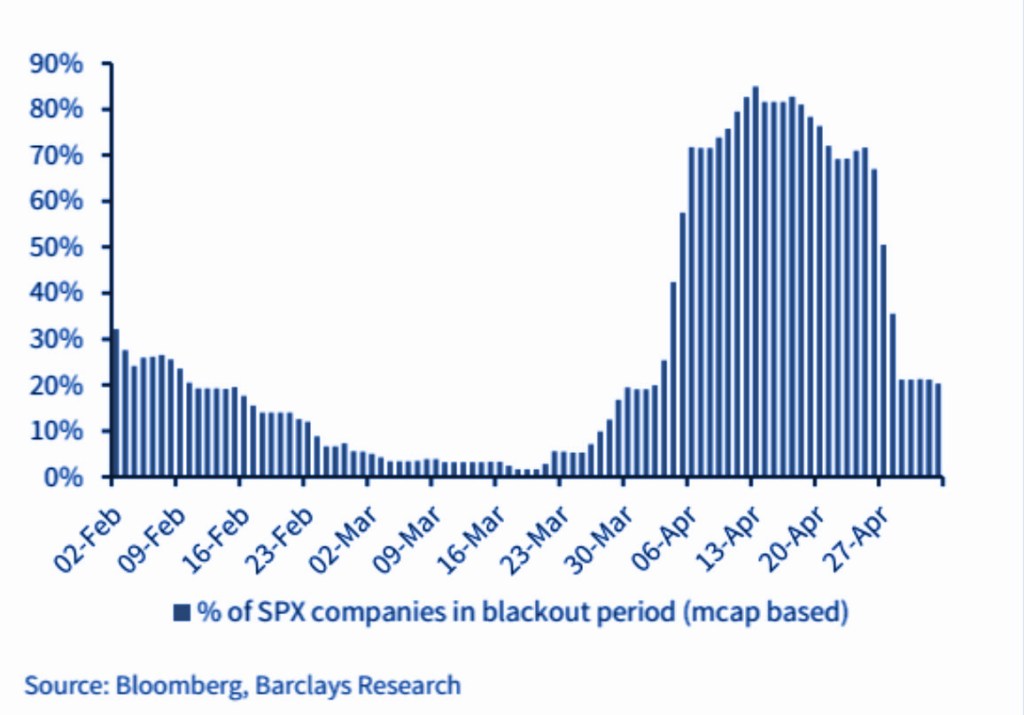 Secondo la teoria del Buyback blackout le prestazioni peggiorano perché le aziende non possono riaquistare azioni prima del rilascio degli utili. Secondo analisi di State street però: